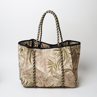 The Tiger Pouch Beige in blends effortless style with everyday function. Featuring a tonal beige with touches of soft olive color this jungle print with hidden tigers and matching boat rope handles is the perfect essential pouch that mathces our Beige Tiger tote.