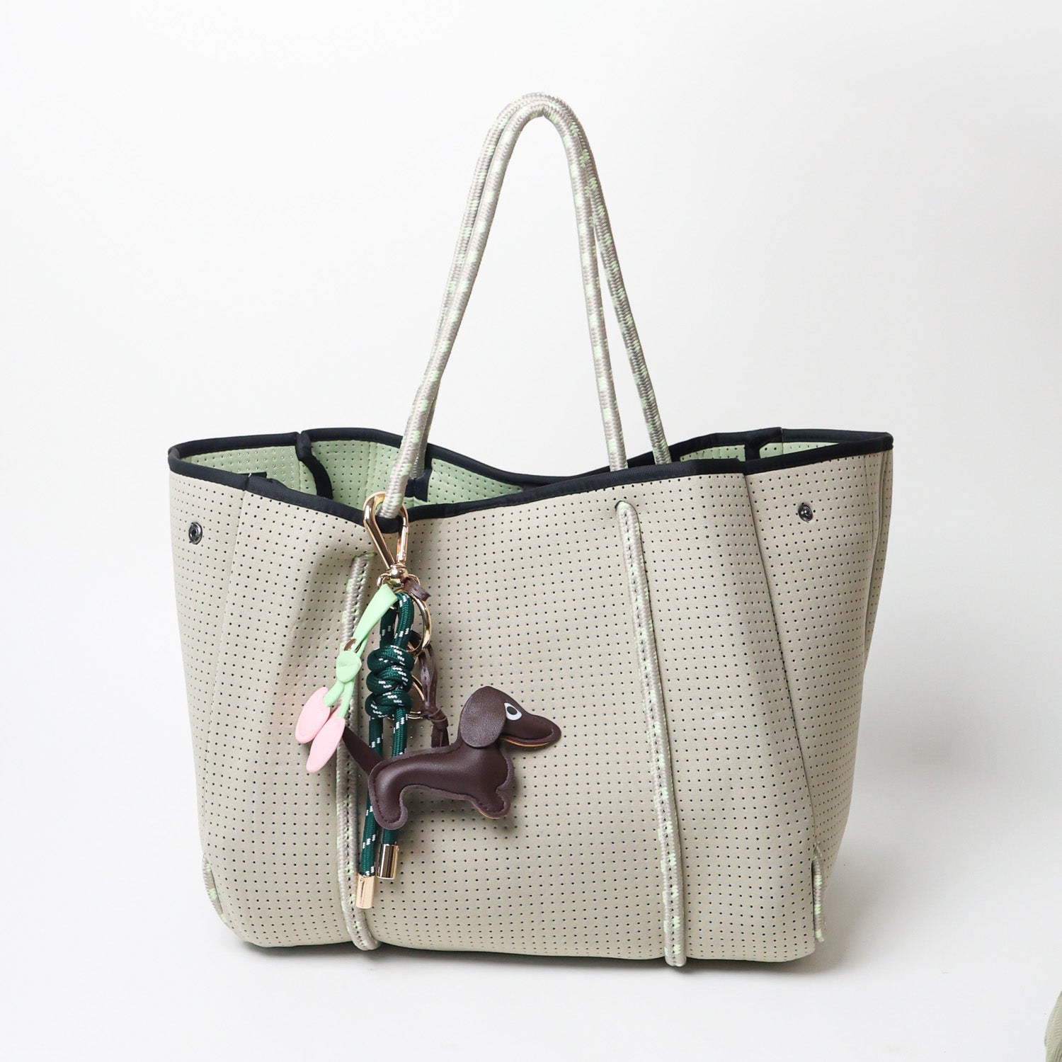 Boat rope keychain adorned with espresso dog and pink heart cherries pendants—a perfect accessory to complement your PopUps tote bag!