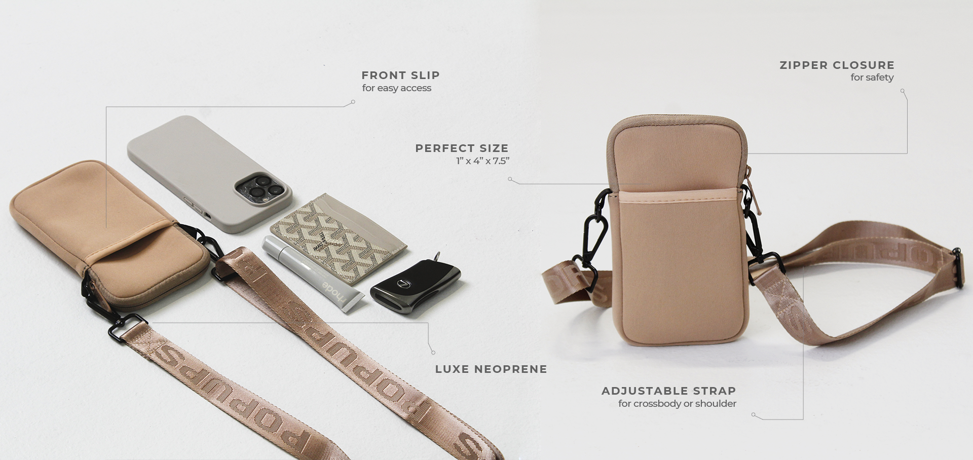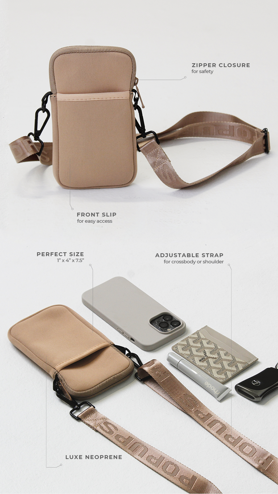Meet your new hands-free essential! This neoprene crossbody phone bag, with an adjustable strap and sleek rectangle shape, is designed to keep up with your on-the-go lifestyle. Featuring a convenient exterior slip pocket and a perfectly snug fit for your phone, it's your go-to for city adventures and neighborhood hangouts. Take it from concerts to daily walks—you'll have all your essentials in one stylish place.