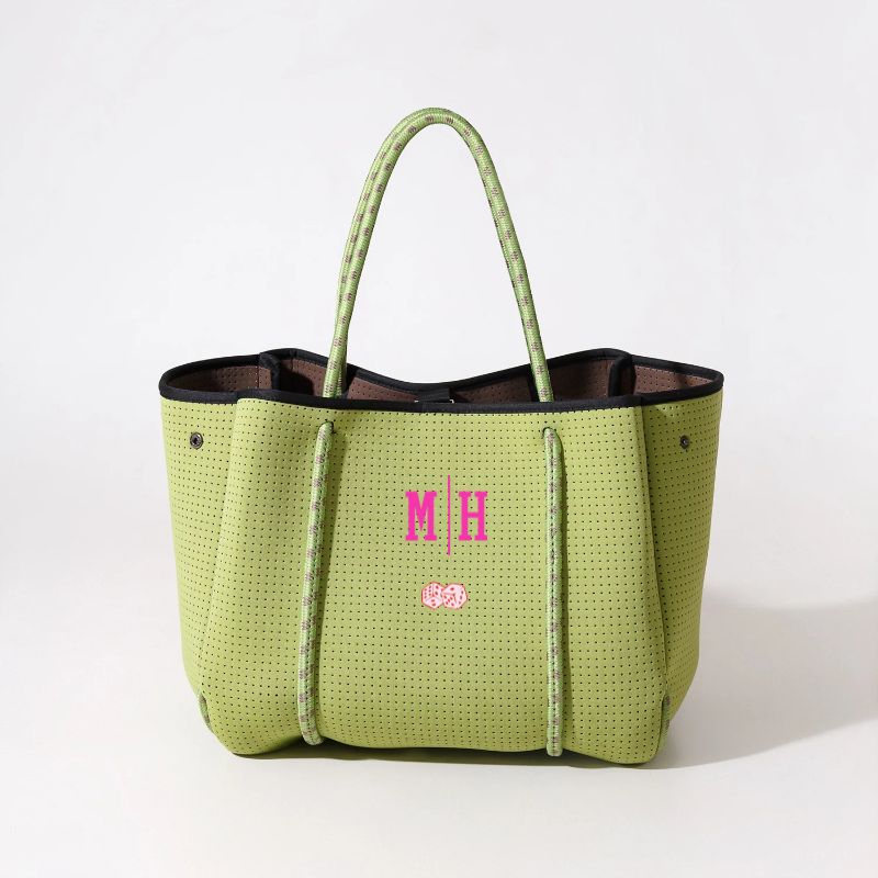 • Made with our 100% luxe perforated neoprene fabric and soft sailing rope handles to carry comfortably on your arm or shoulder.