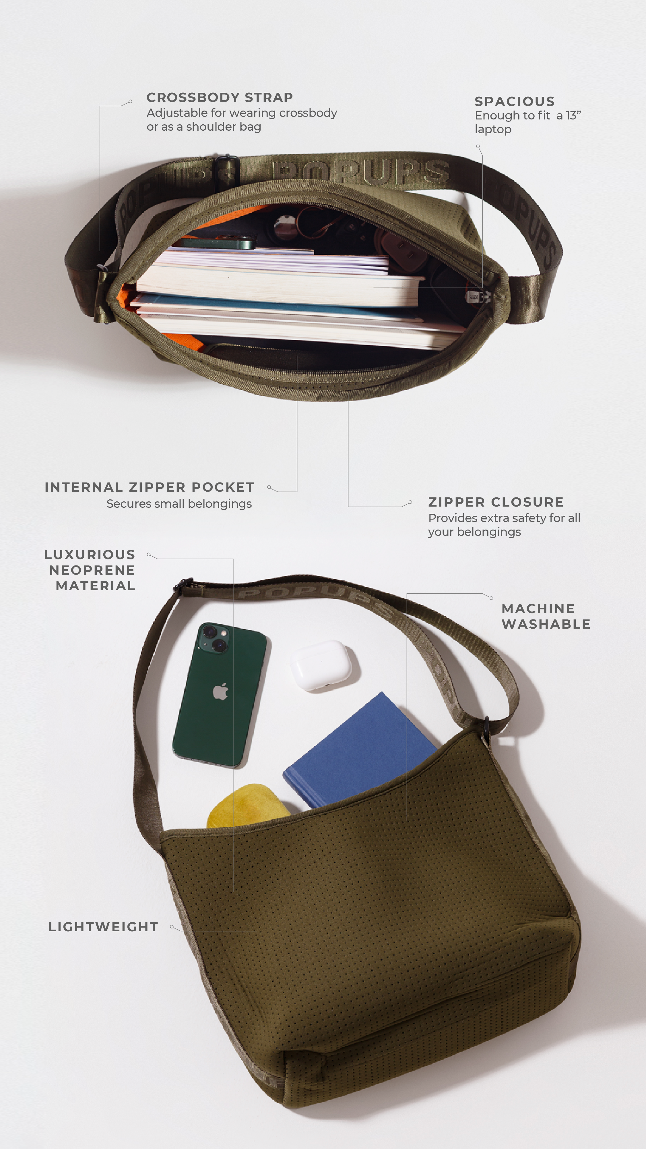 This versatile, practical messenger bag is your new go-to for every occasion β perfect for casual outfits, workdays, quick weekend getaways, and those busy days running around town. Crafted from luxe, best-selling perforated neoprene, it boasts an adjustable crossbody strap, secure zip closure, and internal pockets to keep your valuables safe and sound. Plus, it's washable for ultimate convenience. Available in a variety of chic colors, this classic messenger bag marries the charm of our everyday tote with the functionality of a crossbody. Spacious, functional, and effortlessly stylish β it's the bag that does it all!